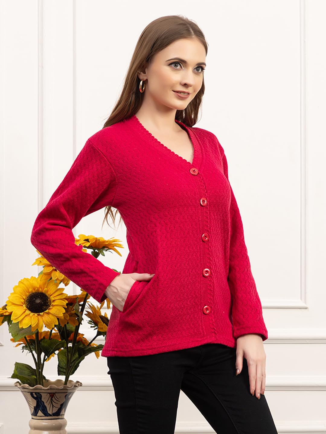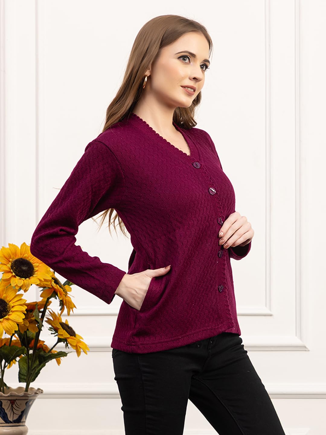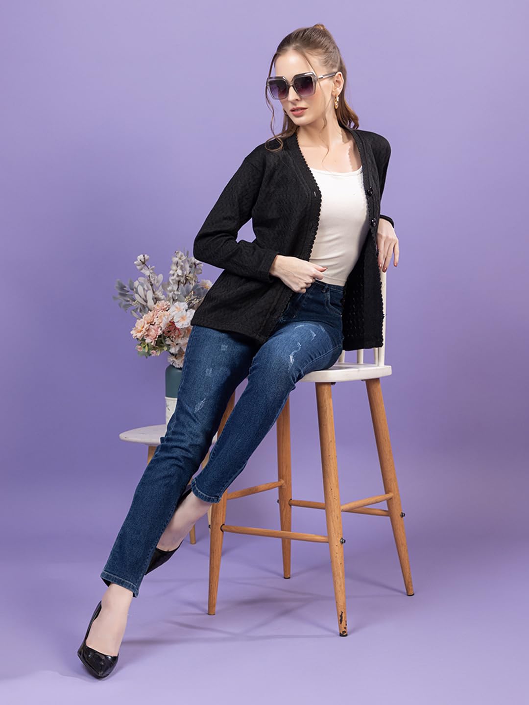 - 🧶 Soft Acrylic Wool Cardigan for Women – Lightweight yet warm winterwear with a delicate textured knit pattern for cozy comfort
