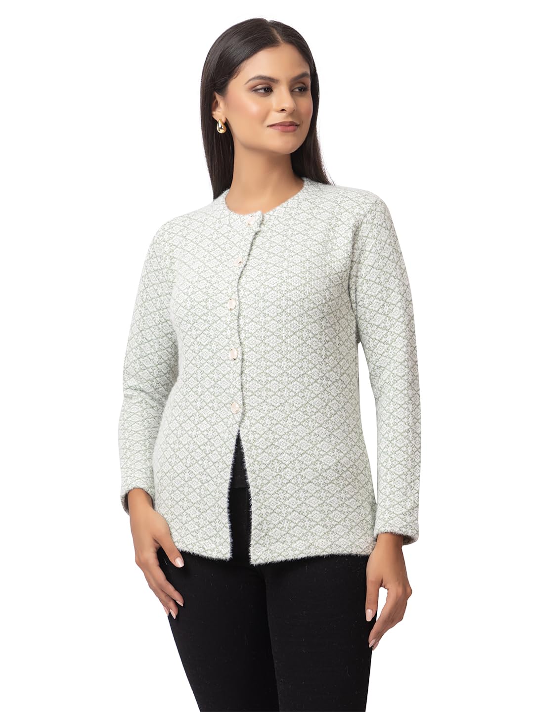 DADU DAYAL Women's Warm Woolen Cardigan - Stylish Full Sleeve Knitwear for Winter, Cozy & Elegant Sweater Symmetric Design