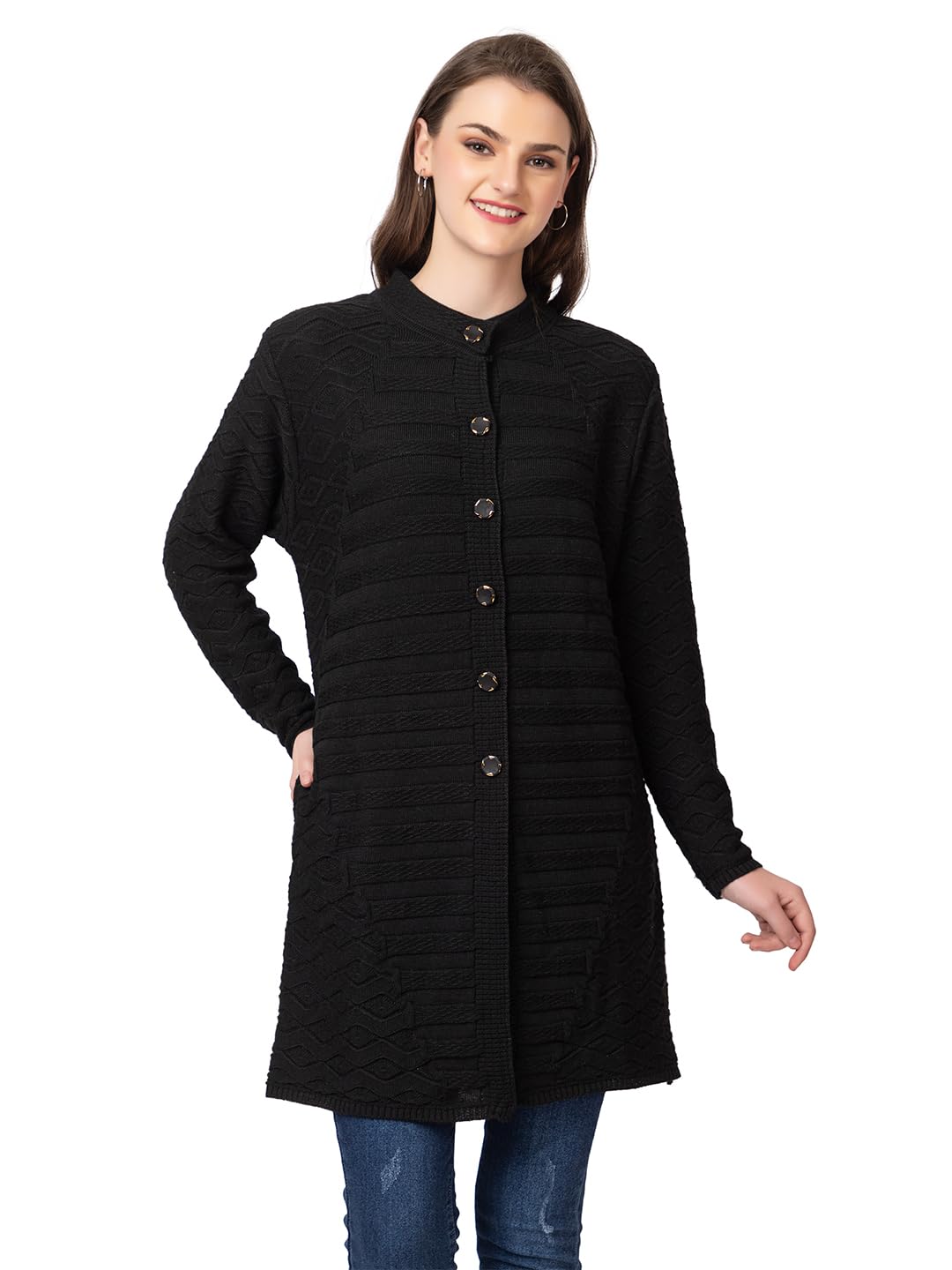DADU DAYAL Women's Woolen Cardigan - Long Horizontal Lines Geometric Pattern Winter Coat, Warm & Stylish Knitwear